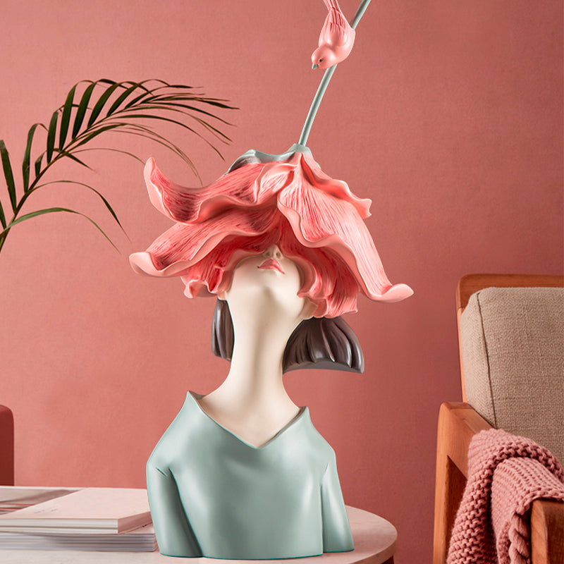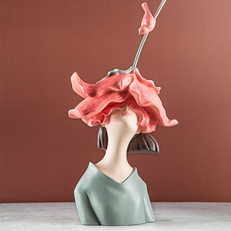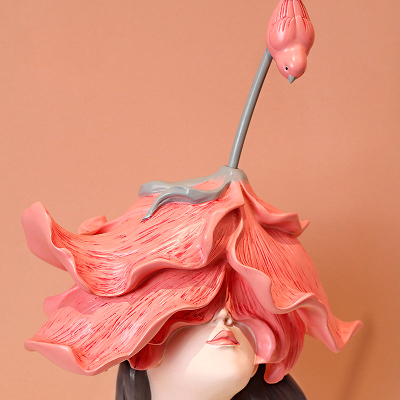 This captivating sculpture tells a heartwarming story of innocence, nature, and the enchanting connection between a young girl and her feathered friend.